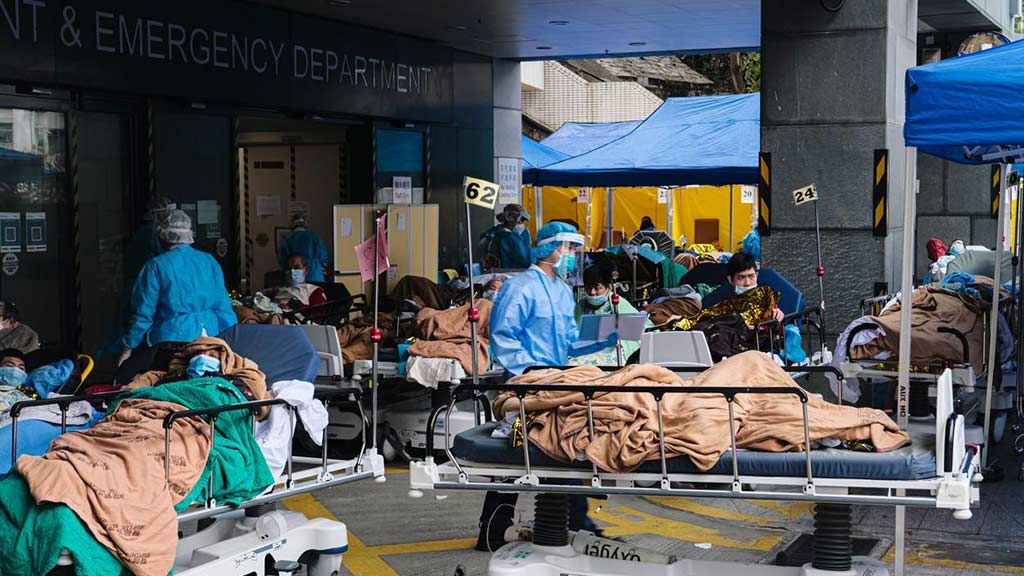 Hong Kong a inregistrat un record zilnic de 6.116 cazuri noi de COVID-19 joi, in timp ce orasul se lupta cu cel mai grav focar de la inceputul pandemiei si pana acum. Spitalele sunt supraaglomerate si au ramas fara paturi pentru bolnavii de Covid. Din lipsa de spatiu, zeci de pacienti COVID sunt tratati afara, in fata unor spitale publice din oras, in vreme ce altii asteapta in scaune rulante, in spatii de triaj improvizate, pana se gaseste un loc si pentru ei.