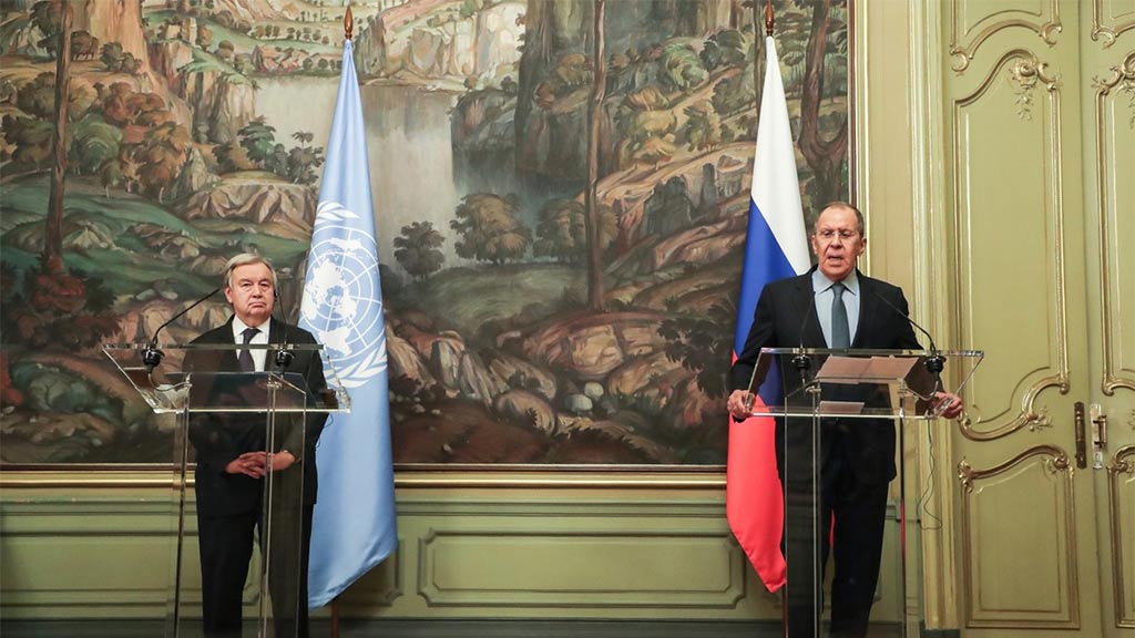 „Potrivit Federatiei Ruse, avem de-a face cu o operatiune speciala, cu obiectivele deja anuntate. Potrivit Natiunilor Unite, in conformitate cu rezolutiile adoptate de Adunarea Generala, invazia rusa din Ucraina constituie o incalcare a integritatii sale teritoriale si o incalcare a Cartei ONU”, a declarat Antonio Guterres in cadrul unei conferinte de presa comune cu ministrul Lavrov.
